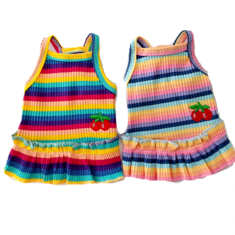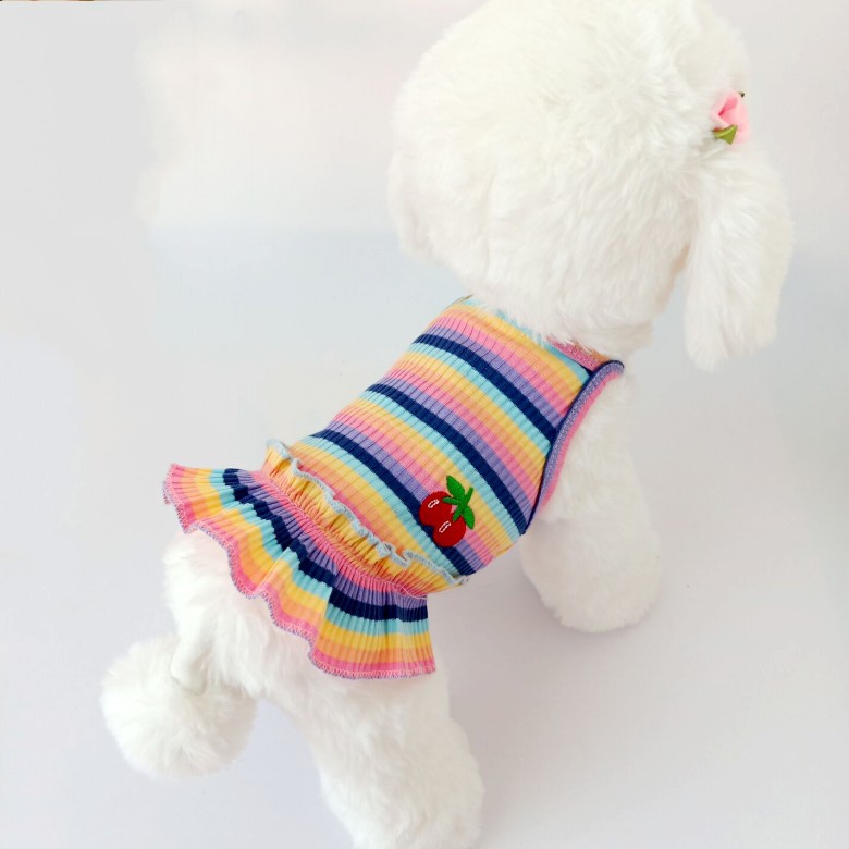 Pet Color Striped Cherry Princess Dress for Pets